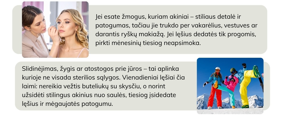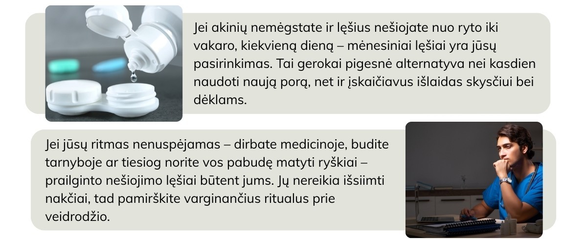 Mėnesiniai kontaktiniai lęšiai jums tinka, jei: