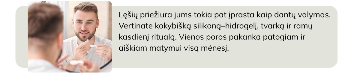 Nėra vienos taisyklės, tinkančios visiems, nes jūsų gyvenimas yra dinamiškas ir nuolat kintantis. Nepamirškite konsultuotis su jūsų akių priežiūros specialistu. Svarbiausia, kad kontaktiniai lęšiai prisitaikytų prie jūsų, o ne jūs prie jų. Jei vis dar dvejojate ir sunku apsispręsti, kuris variantas jums artimesnis – išbandykite tiek vienadienius, tiek mėnesinius kontaktinius lęšius. Eksperimentuodami greitai pajusite, kada jūsų akys jaučiasi geriausiai ir kuris priežiūros būdas kelia mažiausiai rūpesčių. Galutinis sprendimas priklauso nuo jūsų individualaus komforto pojūčio, todėl testuokite, lyginkite ir atraskite tai, kas leidžia jums matyti pasaulį ryškiausiai!